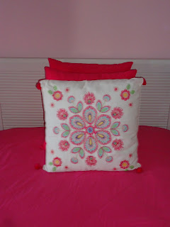 Não há muito tempo, como podem ver por este post, mudei as almofadas que tinha na cabeceira da cama. (Tinha lá umas que era suposto serem temporárias e apesar de confortáveis não combinavam com a decoração e por isso mudei-as.)